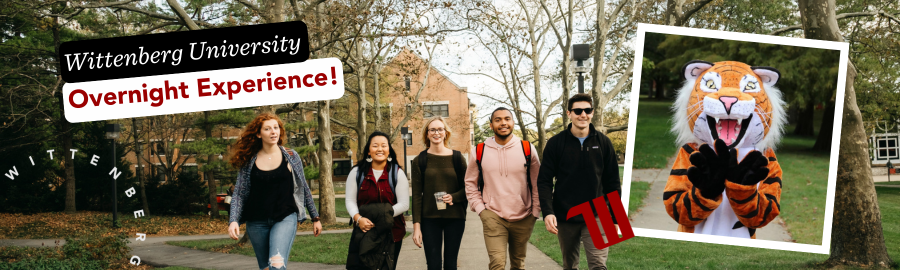 Calling all Future Tigers who have been accepted to Wittenberg for the Fall of 2026 — Spend the night on campus before our Accepted Student Day to fully experience Tiger Life and the Wittenberg Way firsthand! Attendees will have the opportunity to eat in our Center Dining Room, enjoy a variety of fun activities with student ambassadors, explore campus, sleep in a residence hall, and participate in a number of student activities leading up to the start of Accepted Student Day the following morning. All attendees will be placed with a roommate for the evening to provide future Tigers with the fullest, most authentic college experience during their overnight stay.Please note that a separate registration is required for the main Accepted Student Visit Day event taking place the following morning on Monday, February 16. We will also send you a parking pass and overnight agreement prior to the start of your event, so please keep an eye on your email. Contact the Office of Admission at 937-327-6314 or at visitwitt@wittenberg.edu should you have questions, need special accommodations, or would like to request a single room for any reason. We can't wait to see you on campus soon! Tiger Up!